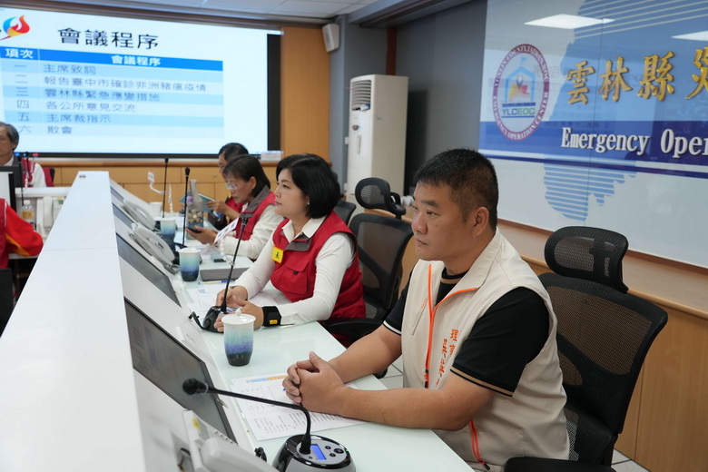 雲林縣政府各局處於中午召開「雲林縣非洲豬瘟緊急應變會議」。決議發送消毒藥劑予縣內1203家養豬場。台61線設置化製車消毒站,針對進入雲林縣境化製車二度清消。建請中央持續全面禁止廚餘養豬。建請中央穩定肉品價格,建立保價機制。輔導動物性殘渣養豬場轉型。確保學校午餐蛋白質供應充足安全等6項決議。