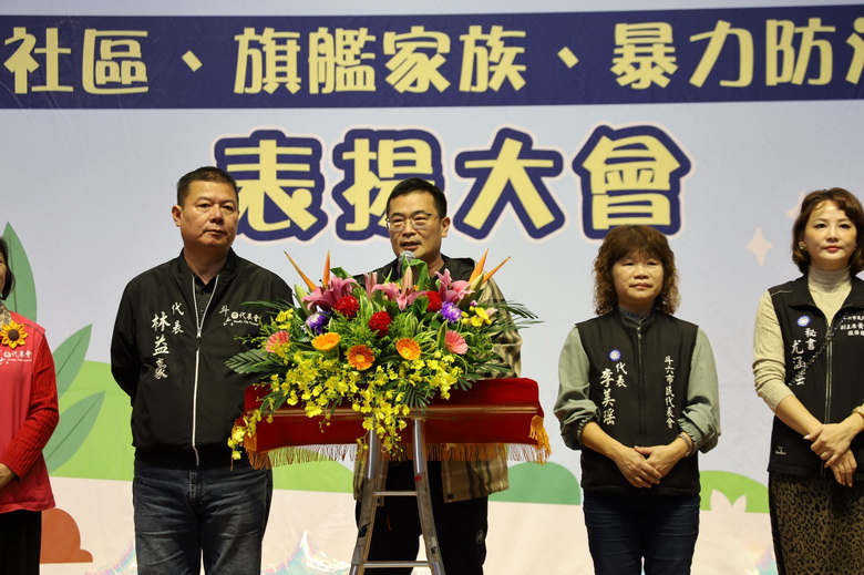 表揚活動現場特別安排各志工楷模、大旗艦家族社區、家庭暴力防治社區頒獎等,受表揚者與家屬合照獻花,更有許多社區的志工陪同參與活動,場面相當溫馨。