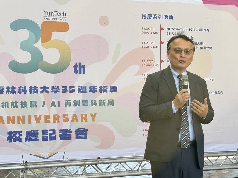 【大報新聞記者陳奕瑋/雲林報導】國立雲林科技大學(YunTech)將於 2025 年 12 月 6 日(星期六) 舉行 35 週年校慶大會與系列活動。本年度校慶以 『35載領航技職 AI再創雲科新局』 為主題,慶祝創校重要里程碑,並聚焦學校在技職教育、AI創新方面的領先地位,同時透過一系列充滿活力與環保精神的活動,展現雲科大獨特的軟硬實力。