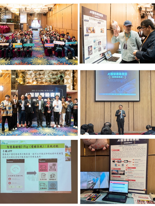 本次活動以「技術實證、場域落地、產業擴散」為核心,除發表「全天候畜牧AI管理平台」於場域實證成果,亦邀請學研團隊分享AI技術於養豬產業的應用經驗。屏科大吳庭育老師與宜蘭大學李秀評老師團隊,展示AI影像技術顛覆傳統「人看豬估價」模式,讓豬隻自然行走即可完成無接觸、無碰觸屠體的瘦肉率預測;屏科大龔旭陽與潘建良老師團隊則從場域管理出發,建置智慧豬隻飼養資訊平台,整合環境監測與飼養管理流程,補足AI技術落地後的營運與決策需求,展現智慧養豬從單點技術到整體應用的產業成熟度。