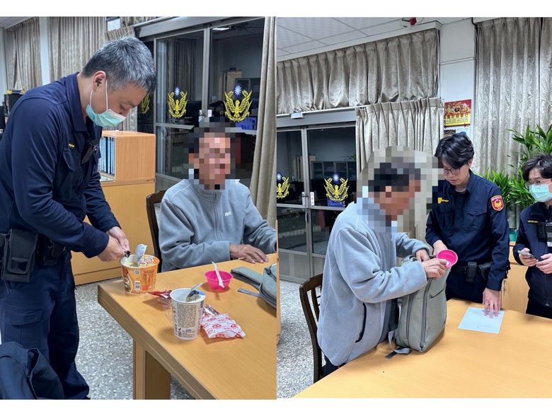 警員張峻豪及孫德祐到場後,與該名男子交談,發現其言語模糊不清且無法清楚表達如何到達斗南鎮,因當晚天氣寒冷,員警先行將男子帶回新光派出所並提供泡麵供其果腹。員警耐心地拼湊男子提供的有限資訊,終於查到該名洪姓男子的資料。