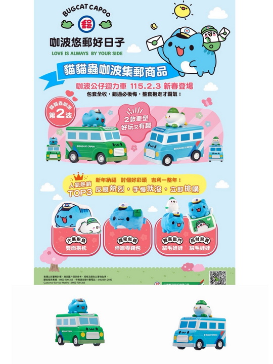中華郵政×貓貓蟲咖波聯名系列商品第二波 「咖波公仔迴力車」盛大登場