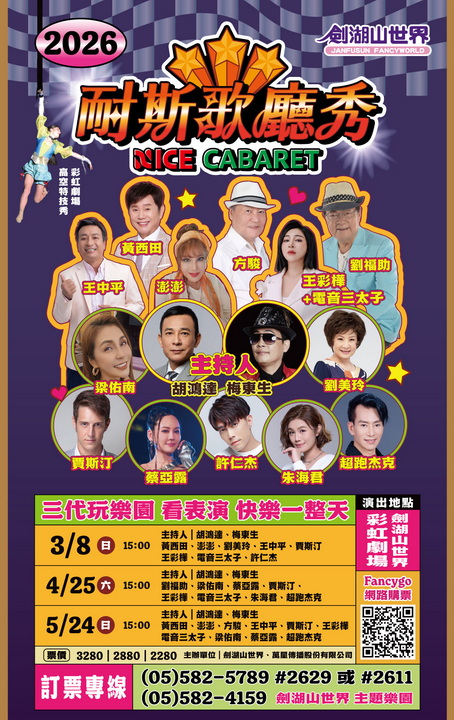 劍湖山世界3月起推《耐斯歌廳秀》 群星輪番開唱 暢玩樂園再看經典歌廳秀