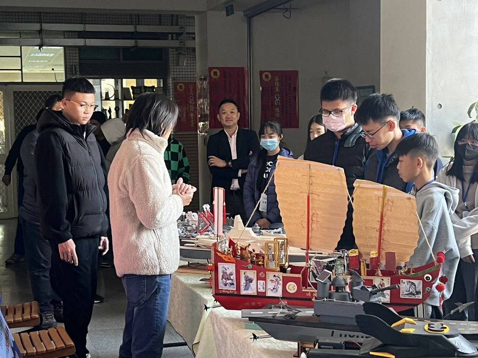 西螺農工機械科凱仁主任亦向參與營隊的國中學生介紹學校近期在技藝競賽與實務培訓上的亮眼成果,並以船模競賽團隊的經驗為例,展現學校在專業訓練與實作能力培養上的卓越成效。學生看到船模精密的真實感不禁感到驚喜。