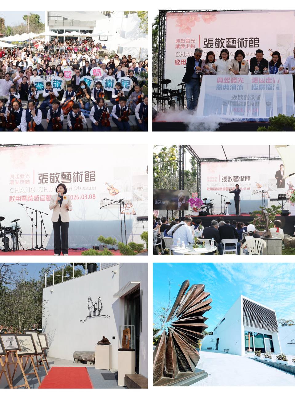 【大報新聞記者陳奕瑋/雲林報導】雲林縣首座私人專業美術館—「張敬藝術館」,在歷經環境整飭與內部調整後,於3月8日(週日)下午三時舉行「興起發光、讓愛走動」活動,宣示正式啟用暨「跨感官藝術宴」。活動邀來韓裔美籍國際長笛家宋松樹老師與在地華山國小弦樂團現場演奏,交織愛的詩歌分享。這不僅是為了完成創始人張敬大師的遺願,更象徵著藝術館在經歷丹娜絲風災重建後的嶄新重生。