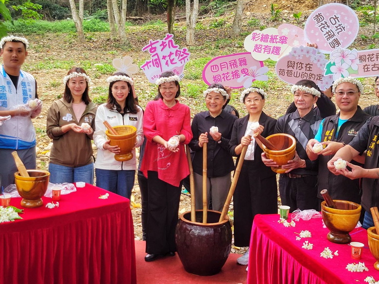 開幕特別安排客家傳統「搗麻糬」體驗,象徵團圓與豐收,並創新推出「桐花印模」,讓民眾將手作麻糬壓製成桐花造型,彷彿把春天捧在手心,增添趣味與紀念價值。