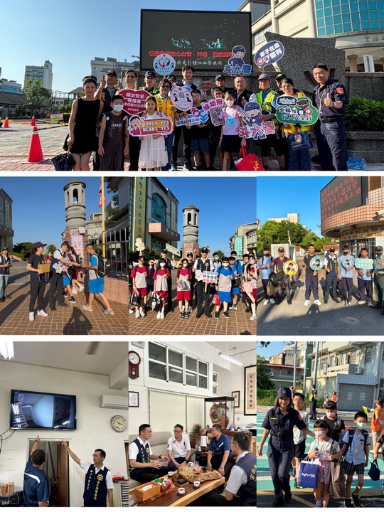 開學日一早,警方即與老師、導護志工一同於校門口迎接學生們上學,除維護校園安全及周遭交通秩序外,另攜帶宣導看板,向這群國家未來主人翁進行法治宣導,包含反霸凌、反毒品、反詐騙、反性剝削及婦幼安全、交通安全等法律知識,並發送實用的各項文具等宣導品,讓學子們於開學第一天便建立正確的自我防護觀念。能在開學日拿到小禮物,學生們都露出了開心的笑容,送孩子上學的家長們看到警方與校方的用心,也感到十分放心。