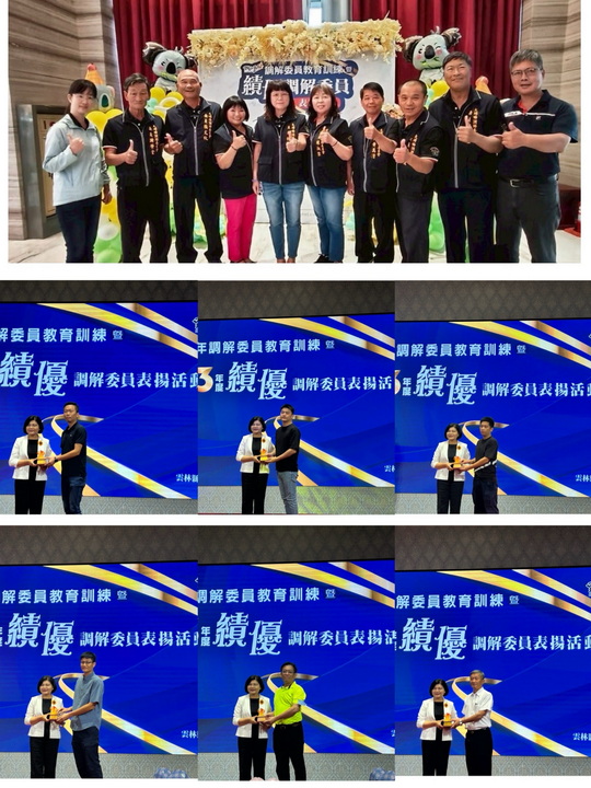 【大報新聞記者李婉愉/雲林報導】為表彰基層員警及調解人員在促進社會和諧的辛勞與貢獻,雲林縣政府於114年9月17日在斗六市三好國際酒店舉辦「113年度績優調解委員表揚典禮」。現場由縣長張麗善親自頒獎,向所有致力於糾紛調解的優秀人士表達肯定與感謝。