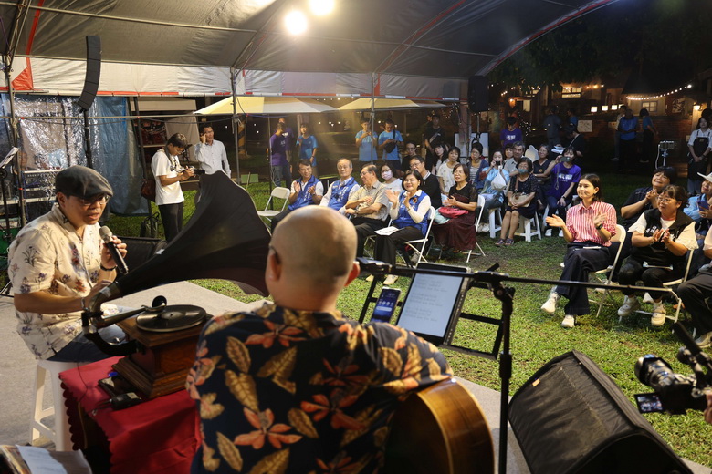 【大報新聞記者陳奕瑋/雲林報導】「雲林五大基地V.S歲月留聲文化遊」20日晚間在虎尾建國眷村己棟大草皮隆重登場。這場講唱會以「邊唱邊說」的形式,將經典國、台語老歌與五大文化基地的故事緊密結合,帶領觀眾穿梭時光、聆聽建築背後的故事,讓音樂成為雲林歷史的最佳註解。