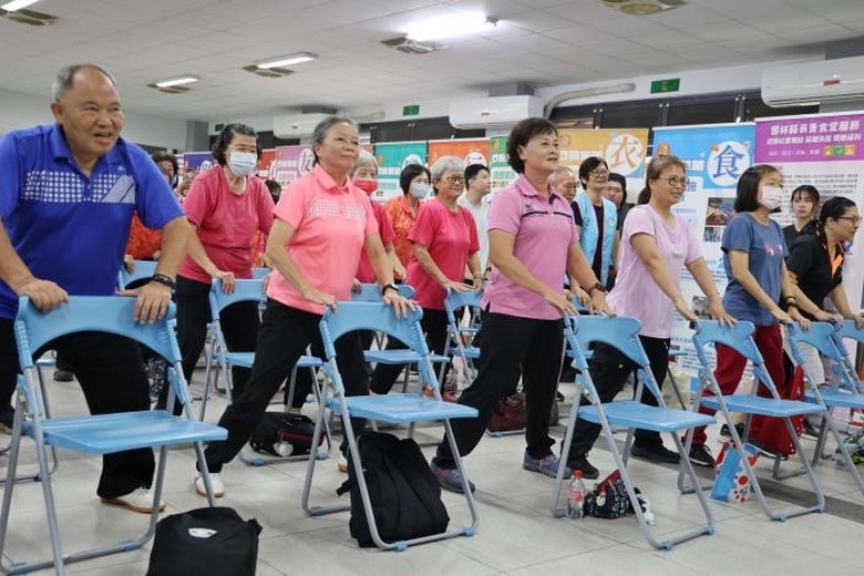 雲林縣長張麗善、雲林縣政府社會處長林文志、社團法人雲林縣雲林國際青年商會會長簡于傑、縣議員陳永修夫人柯嘉君、陳芳盈議員秘書郭米蘭、斗六市民代表會賴瑪玲代表、斗南鎮公所主秘盧瓊枝、鎮西里長張寶德等人一早跟著舞蹈老師帶領各據點與長青食堂的幹部和志工伙伴動起來,讓平時忙於各據點及長青食堂的服務人員、志工等能透過運動直播派對觀摩學習,將運動模組帶回據點及食堂,帶領長輩一同透過運動,預防及延緩失能、老化。