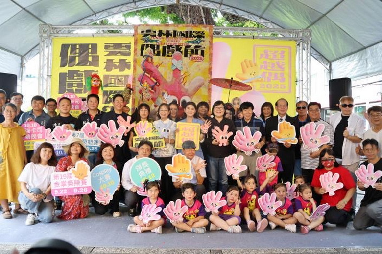 雲林國際偶戲節邁入第23屆,9月25日上午11點在雲林布袋戲館舉行記者會,活動在藝術藝術家獻禮、布袋戲大師代言以及cosplay助陣的熱鬧簇擁中,宣布今年精彩活動進入第二階段,雙十連假好戲不斷,不容錯過。虎尾鎮幼兒園幼兒以今年活動主視覺吉祥物-手指偶搭配演出,天真浪漫的可愛動作,逗樂了現場所有來賓;雲林傑出演藝團隊「真雲林閣掌中劇團」帶來偶藝戲、偶巴的演出;現場揭幕縣內知名藝術家周秀惠以其獨特的拼布創作手法,轉譯2025年雲林國際偶戲節主視覺,讓今年的IP角色更鮮活。