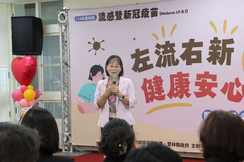 【大報新聞記者陳奕瑋/雲林報導】今(114)年秋冬流感及新冠疫苗同步於今(10/1)日分階段開打,為鼓勵民眾踴躍接種,本縣今日上午於土庫鎮越港里集會所召開「流感及新冠疫苗(LP.8.1)開打」記者會,由雲林縣副縣長謝淑亞、雲林縣政府衛生局長曾春美及疾病管制署南區管制中心專門委員蔡遠鵬等一同向鄉親宣導「左流右新」雙重保護的重要性,呼籲符合資格的民眾踴躍接種,尤其是長者及慢性病高風險族群者,更應及早完成接種,為自己和家人建立更好的健康保護力。